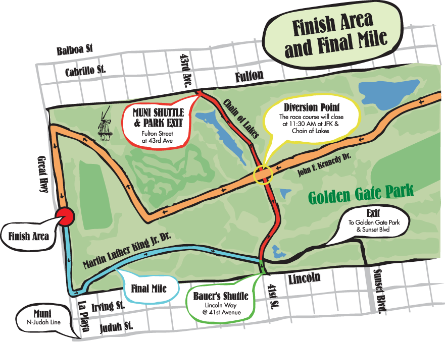The Zazzle Bay to Breakers Final Mile festival will be located along MLK drive between the Great Highway and 41st Avenue.